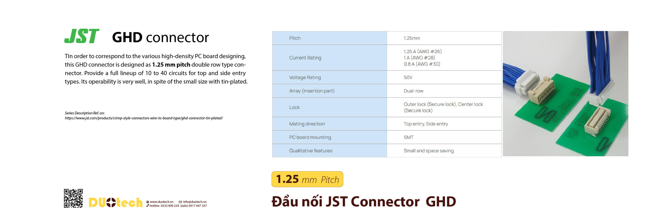1.25mm Pitch đầu nối GHD connector JST housing jack giắc rắc nối dây điện vỏ nhựa chân pin contact