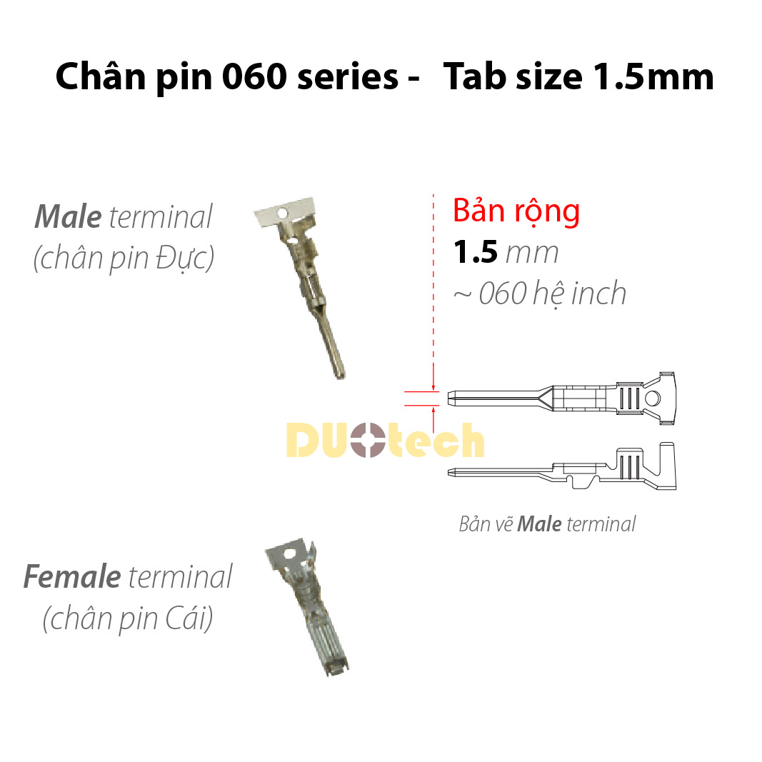 - 060 Terminals tab size 1.5mm chân kim pin bấm dây điện cho Connector
