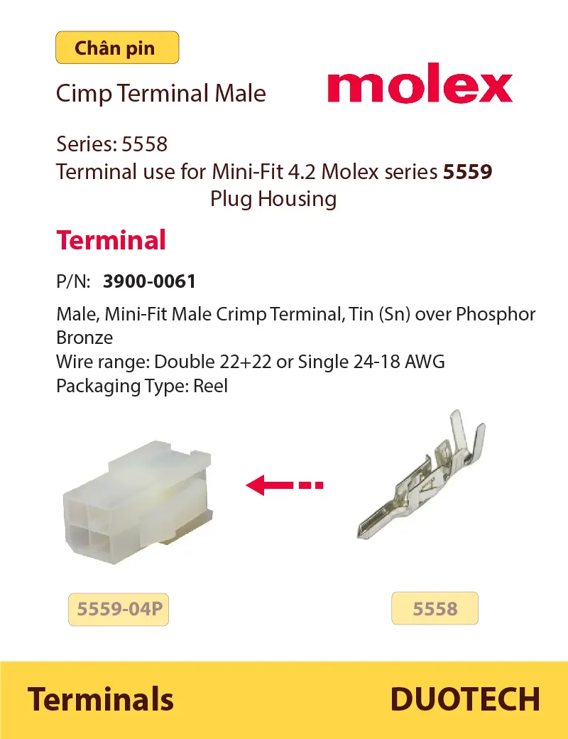 Phân tích Terminal Male Molex 5558T được đại lý duotech cung cấp thương hiệu molex 5558t